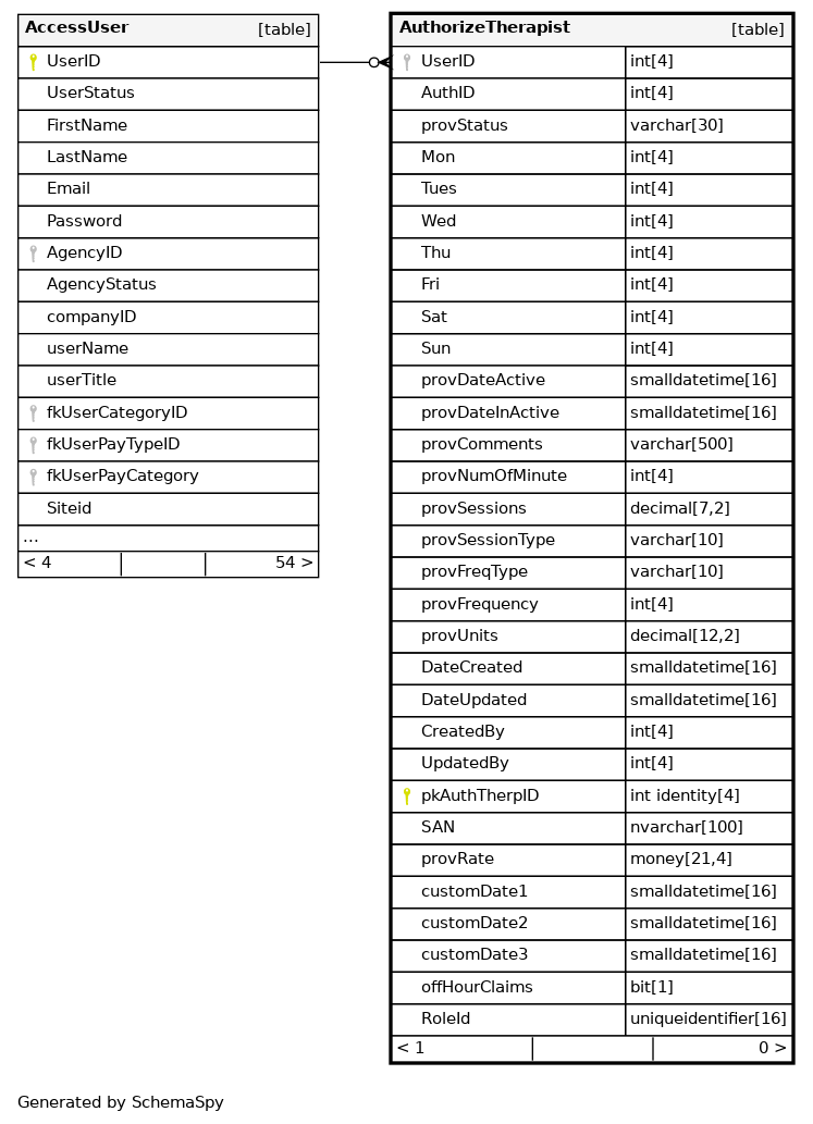 | PK_AuthorizeTherapist | Primary key | Asc | pkAuthTherpID |