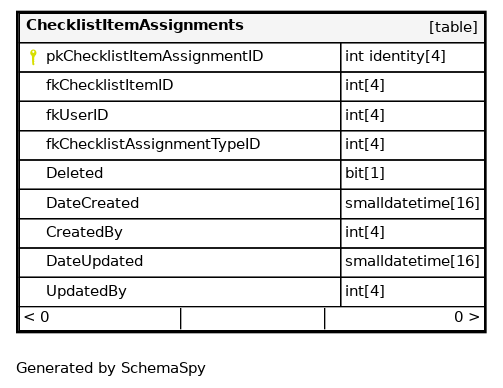 | pkChecklistItemAssignmentID | int identity | 4 | √ | null |