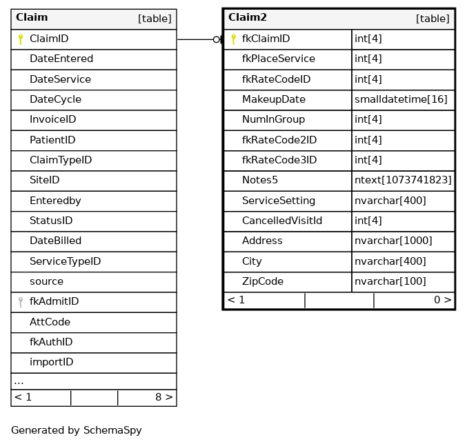 | PK_Claim2 | Primary key | Asc | fkClaimID |
