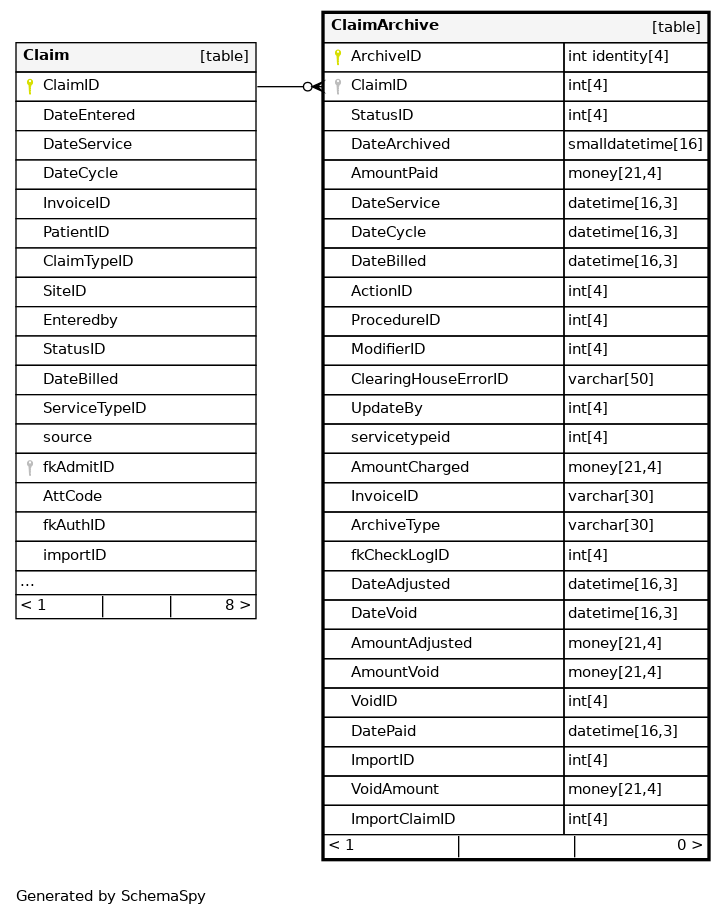 | PK_ClaimArchive | Primary key | Asc | ArchiveID |