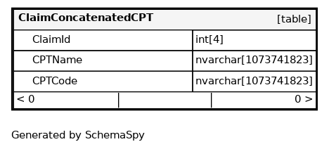 | IX_Claim_ClaimConcatenatedCPT | Performance | Asc | ClaimId |
