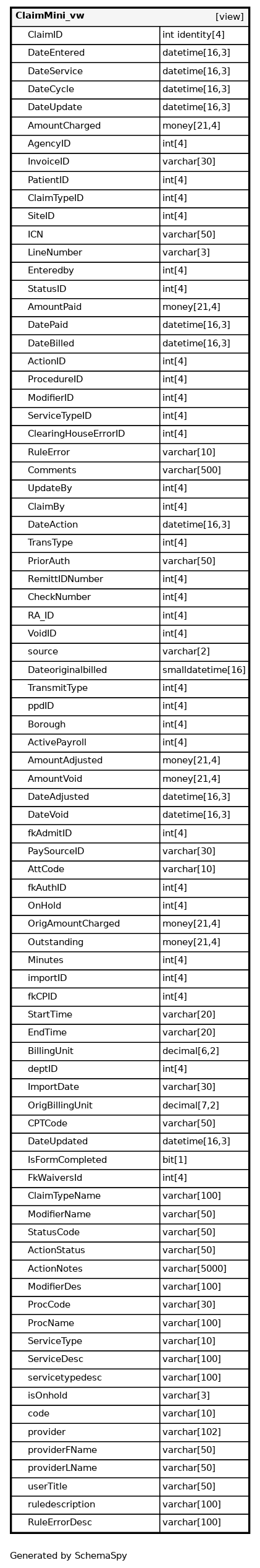 | ClaimID | int identity | 4 | null |