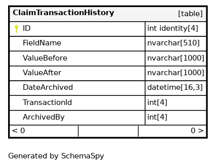 | PK__ClaimTra__3214EC271DB09C19 | Primary key | Asc | ID |