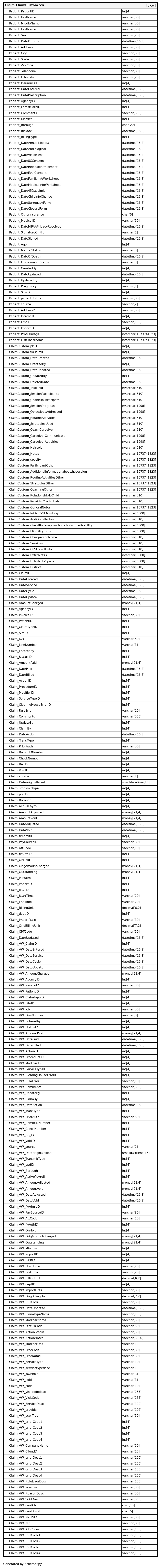 | Claim_VW_DateUpdated | datetime | 16,3 | √ | null |