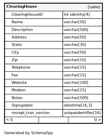 | Column | Type | Size | Nulls | Auto | Default | Children | Parents | Comments |