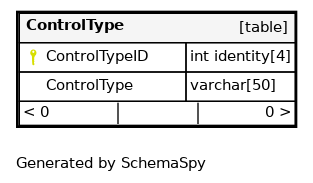 | PK_ControlType | Primary key | Asc | ControlTypeID |