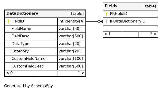 | PK__DataDictionary__47BEE010 | Primary key | Asc | FieldID |