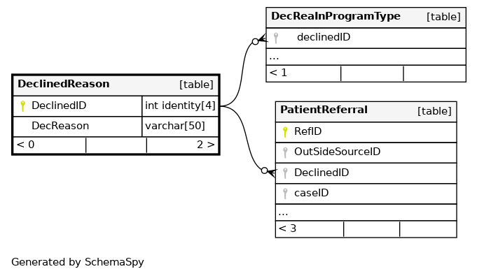 | PK__DeclinedReason__603D47BB | Primary key | Asc | DeclinedID |