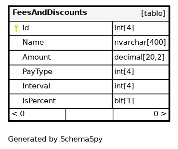 | PK_FeesAndDiscounts_1 | Primary key | Asc | Id |