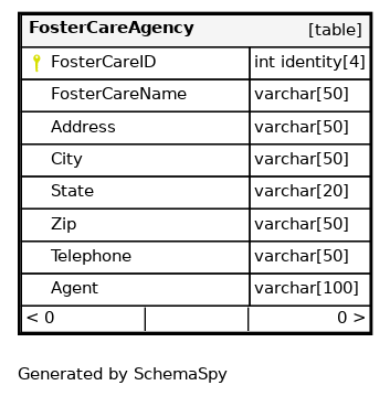 | PK_FosterCareAgency | Primary key | Asc | FosterCareID |