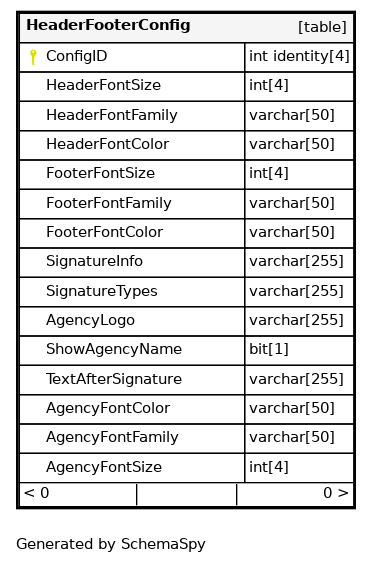 | PK_HeaderFooterConfig | Primary key | Asc | ConfigID |