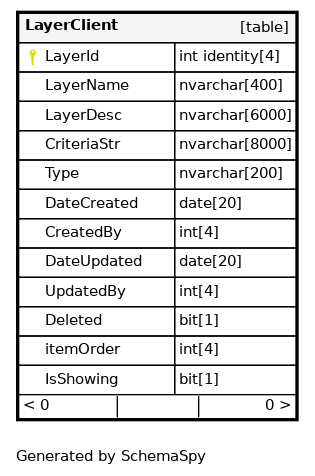 | PK_LayerClient | Primary key | Asc | LayerId |