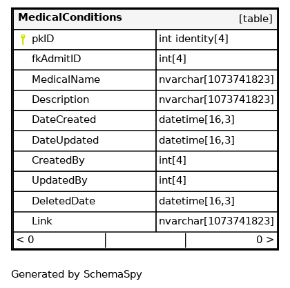 | PK_MedicalConditions | Primary key | Asc | pkID |