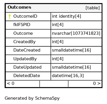 | PK_OutcomeID | Primary key | Asc | OutcomeID |