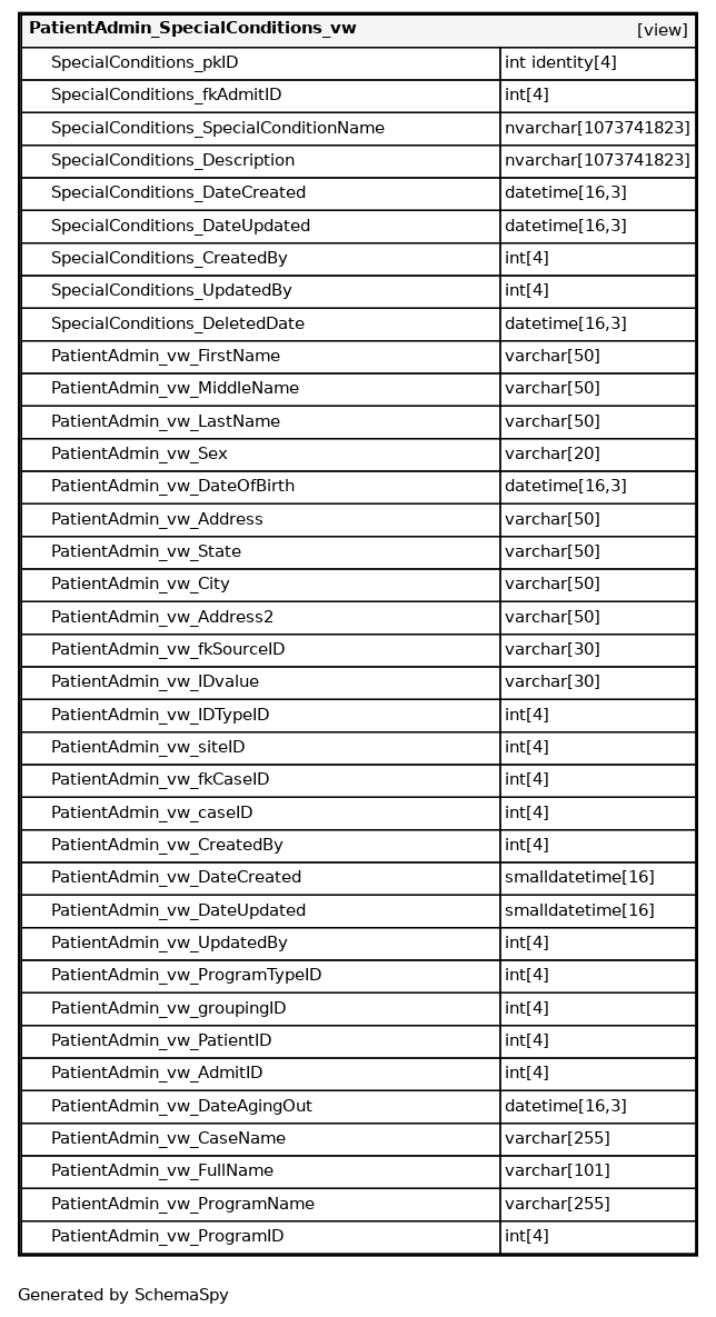 | PatientAdmin_vw_PatientID | int | 4 | √ | null |