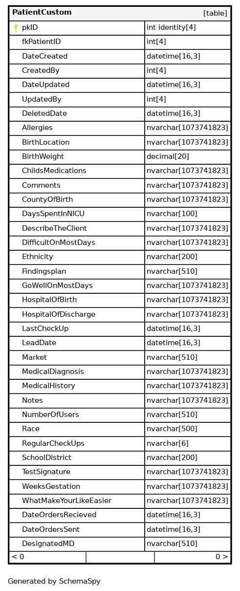 | PK_PatientCustom_1 | Primary key | Asc | pkID |