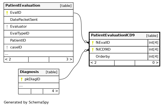 | PK_PatientEvaluationICD9 | Primary key | Asc/Asc | fkEvalID + fkICD9ID |