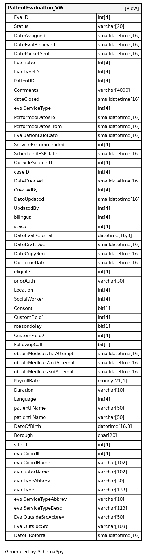 Evaluation primary key - Unique identifier for each patient evaluation |
