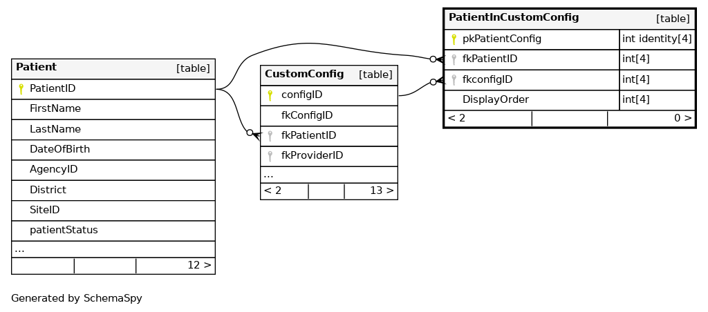 | PK_PatientInCustomConfig | Primary key | Asc | pkPatientConfig |
