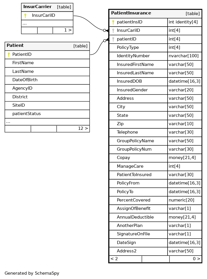 | PK__PatientInsurance__42F7C8EE | Primary key | Asc | patientInsID |