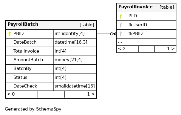 | PK__PayrollBatch__1705036E | Primary key | Asc | PBID |