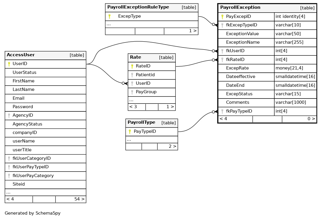 | PK__PayrollException__784B7224 | Primary key | Asc | PayExcepID |