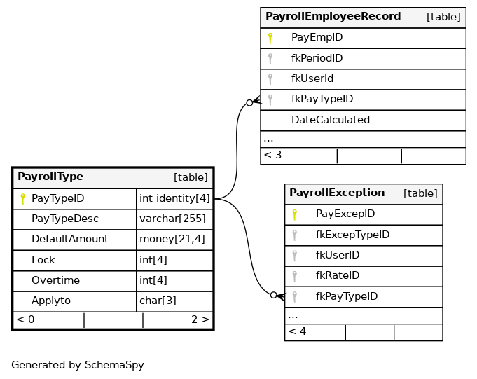 | PK__PayrollType__2EDC8CFF | Primary key | Asc | PayTypeID |