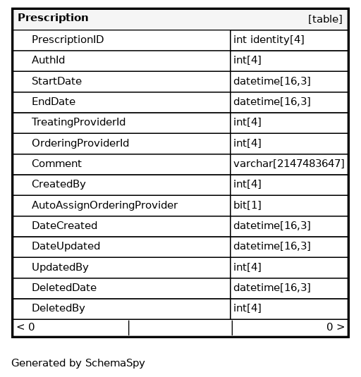 | IX_PrescriptionId | Performance | Asc | PrescriptionID |