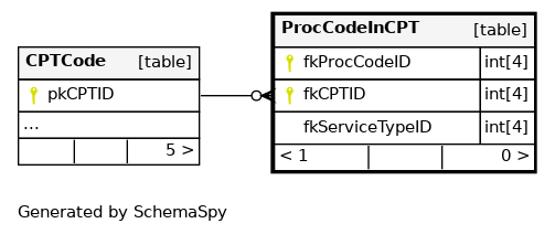 | PK_ProcCodeInCPT | Primary key | Asc/Asc | fkProcCodeID + fkCPTID |