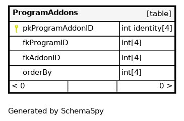 | PK_ProgramAddons | Primary key | Asc | pkProgramAddonID |