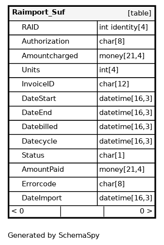 | Column | Type | Size | Nulls | Auto | Default | Children | Parents | Comments |