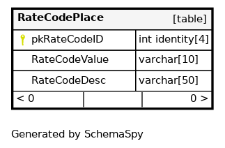 | PK_RateCodePlace | Primary key | Asc | pkRateCodeID |