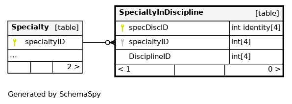 | PK__SpecialtyInDisci__68E867AC | Primary key | Asc | specDiscID |