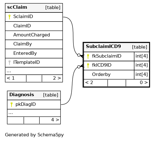 | PK_SubclaimICD9 | Primary key | Asc/Asc | fkSubclaimID + fkICD9ID |