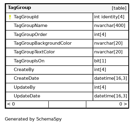 | PK_TagGroup | Primary key | Asc | TagGroupId |