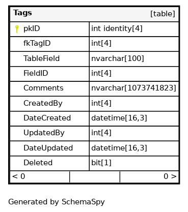 | Column | Type | Size | Nulls | Auto | Default | Children | Parents | Comments |