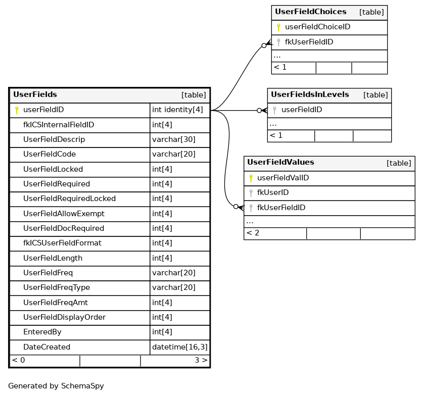 | PK__UserFields__717DADAD | Primary key | Asc | userFieldID |