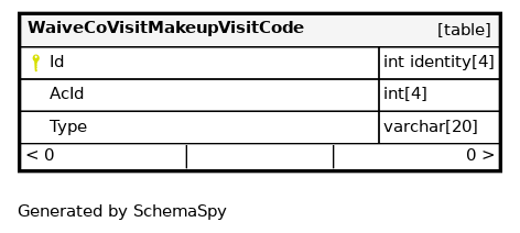 Primary key - Unique identifier for each waiver/makeup visit code |