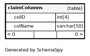 | Column | Type | Size | Nulls | Auto | Default | Children | Parents | Comments |