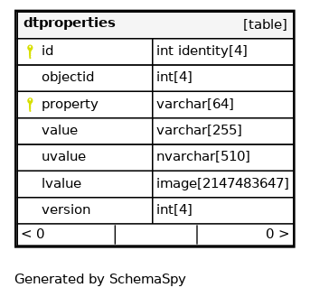 | pk_dtproperties | Primary key | Asc/Asc | id + property |