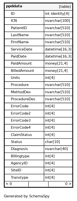 | Column | Type | Size | Nulls | Auto | Default | Children | Parents | Comments |