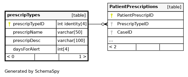| PK__prescripTypes__66F53242 | Primary key | Asc | prescripTypeID |