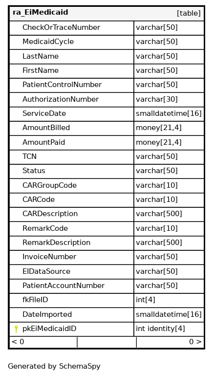 | PK_ra_EIMedicaidId | Primary key | Asc | pkEiMedicaidID |